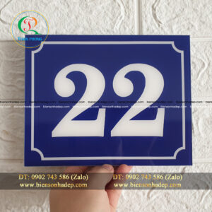 Biển Số Nhà Mica Xanh in chìm – Bảo hành trọn đời