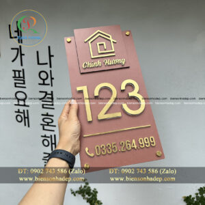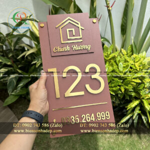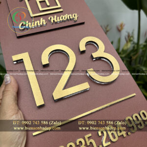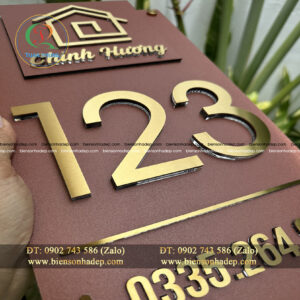Đánh giá BIỂN SỐ NHÀ. Nền Alcorest màu nâu + Inox Xước Vàng